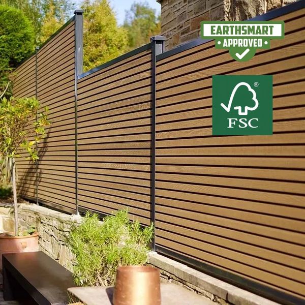 EARTHSMART APPROVED Composite fence panels are made from FSC regulated forest wood and certified recycled polymers.